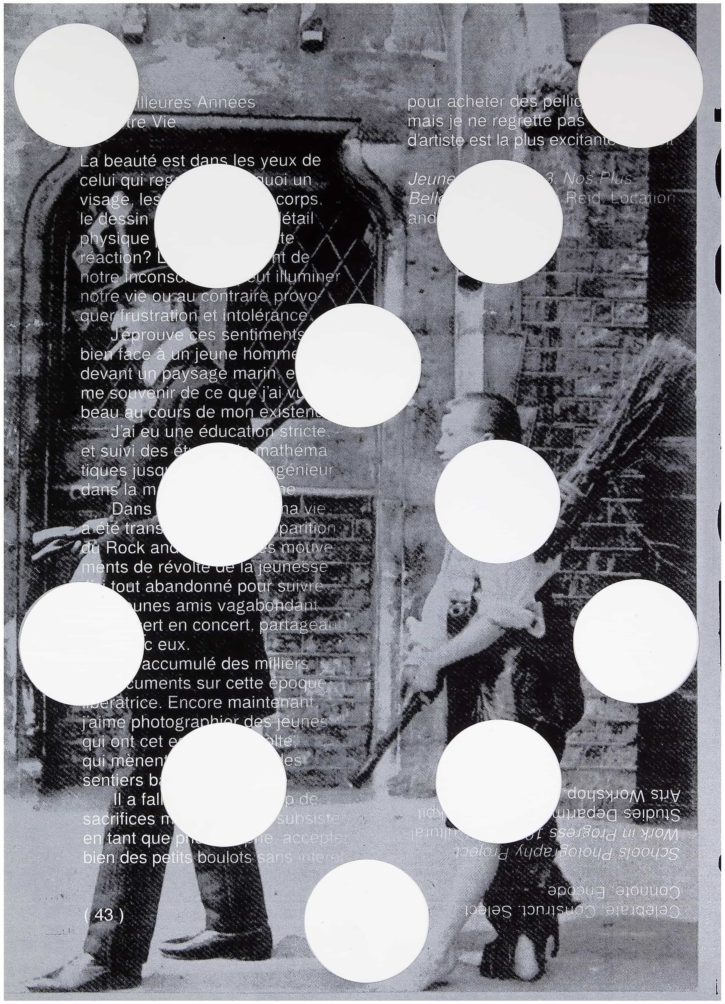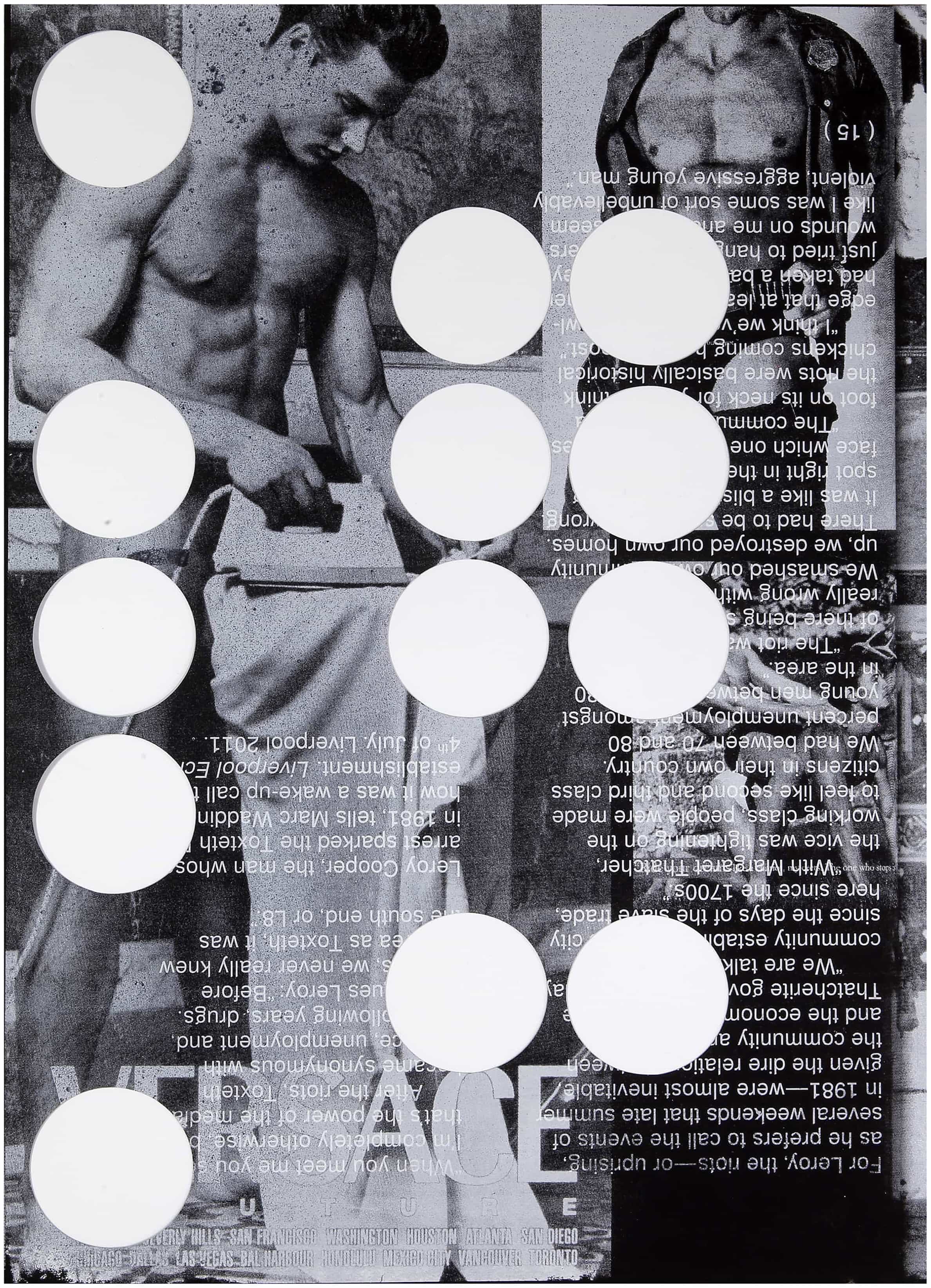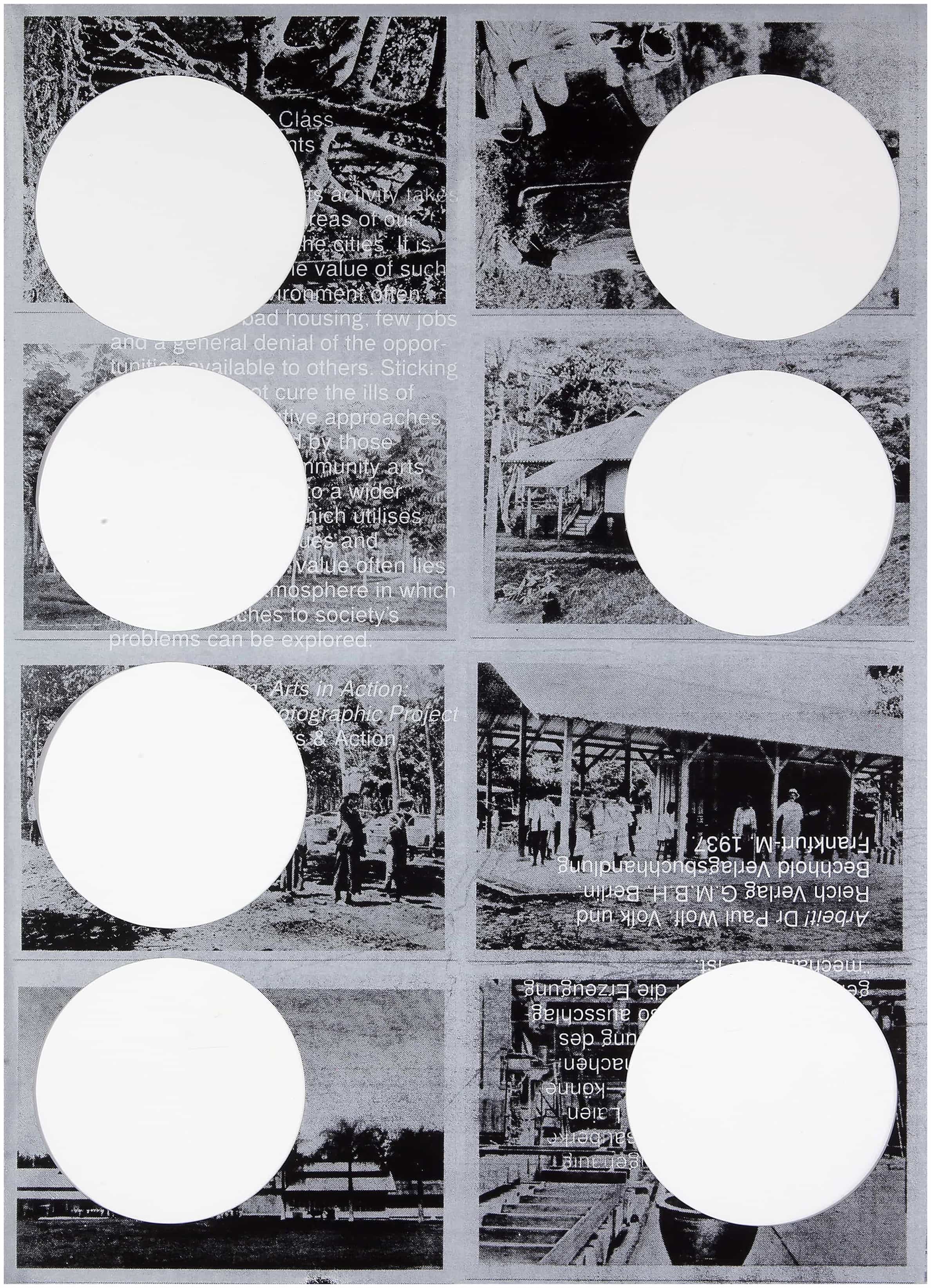 Test prints that were generated during the printing process of A GESTURAL HISTORY OF THE YOUNG WORKER (2019), an installation by Werker, are invalidated by punch holes. While the original documents lose their didactic function, other forms of value appear in the abstracted and commodified artwork.