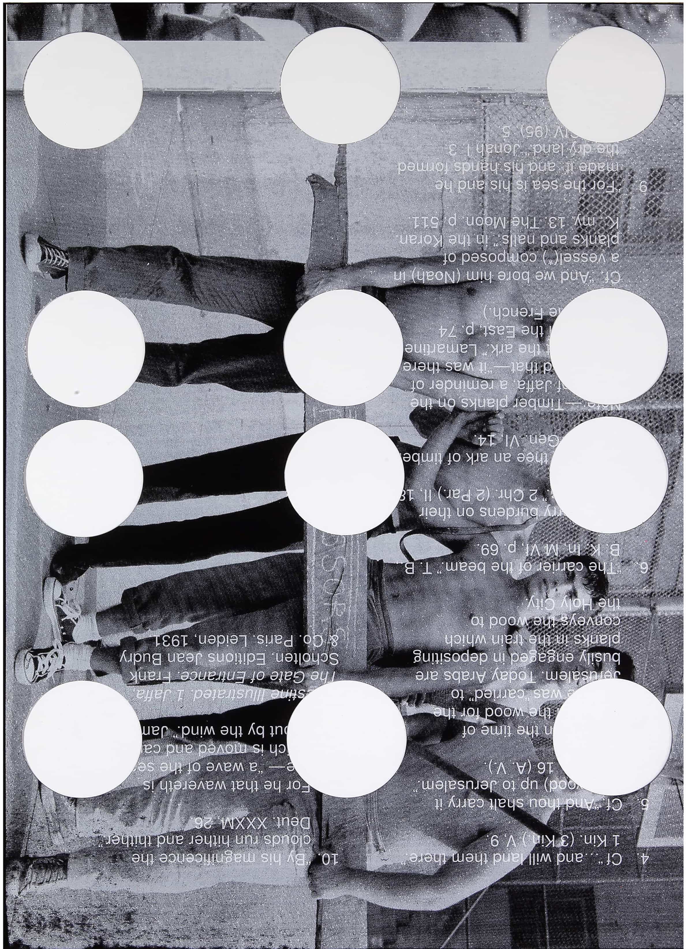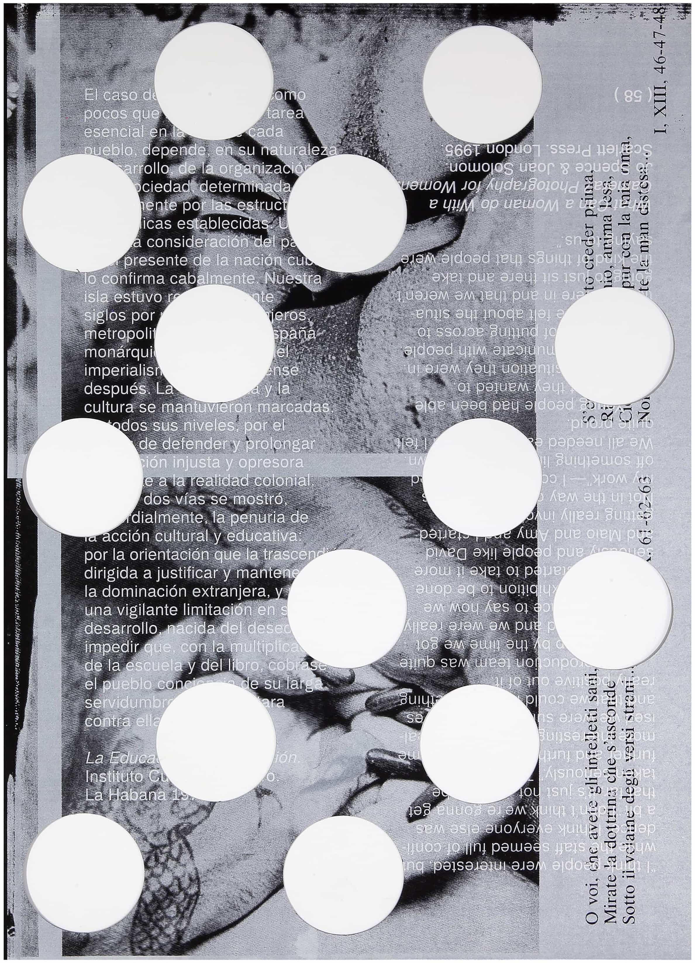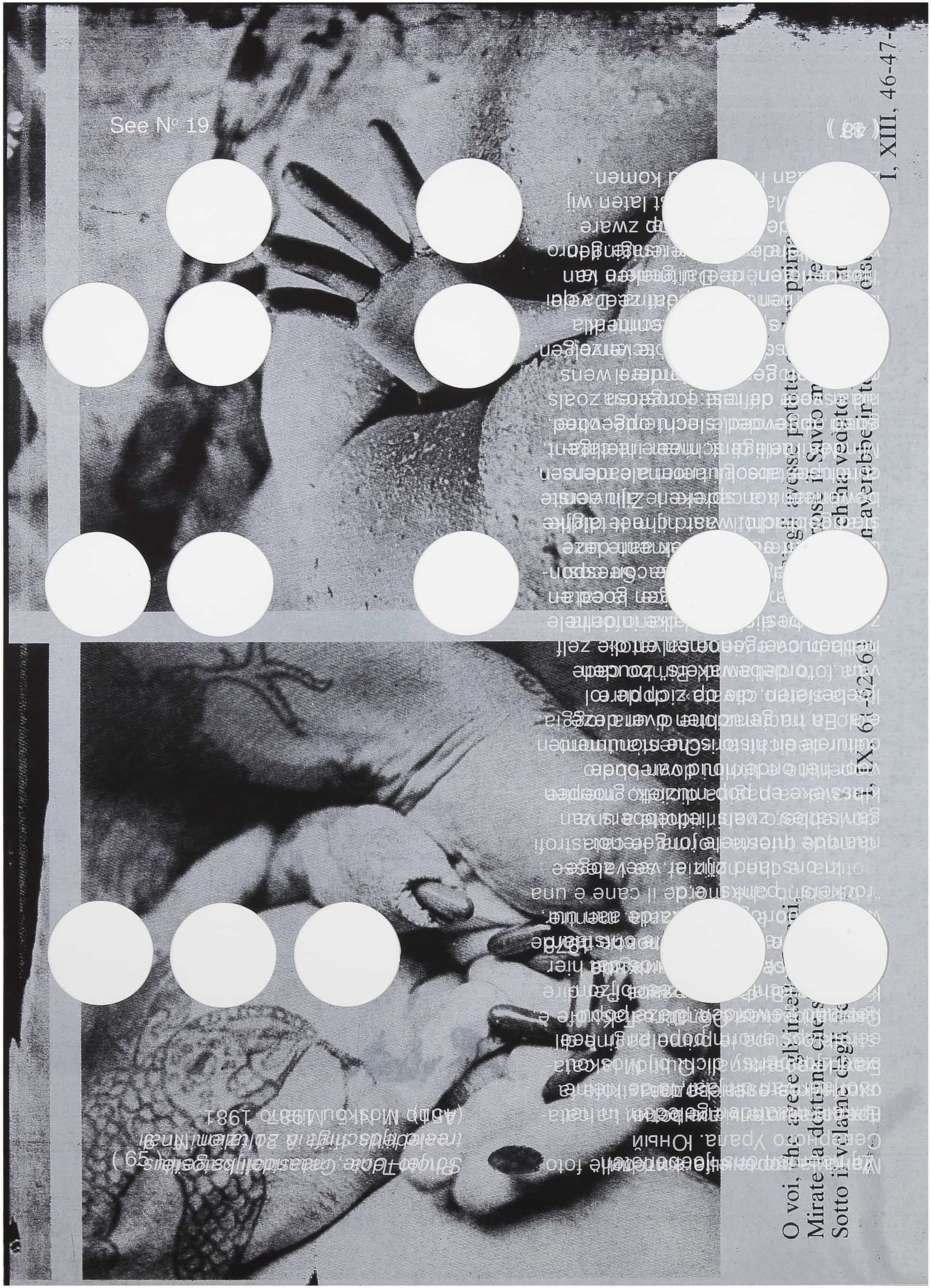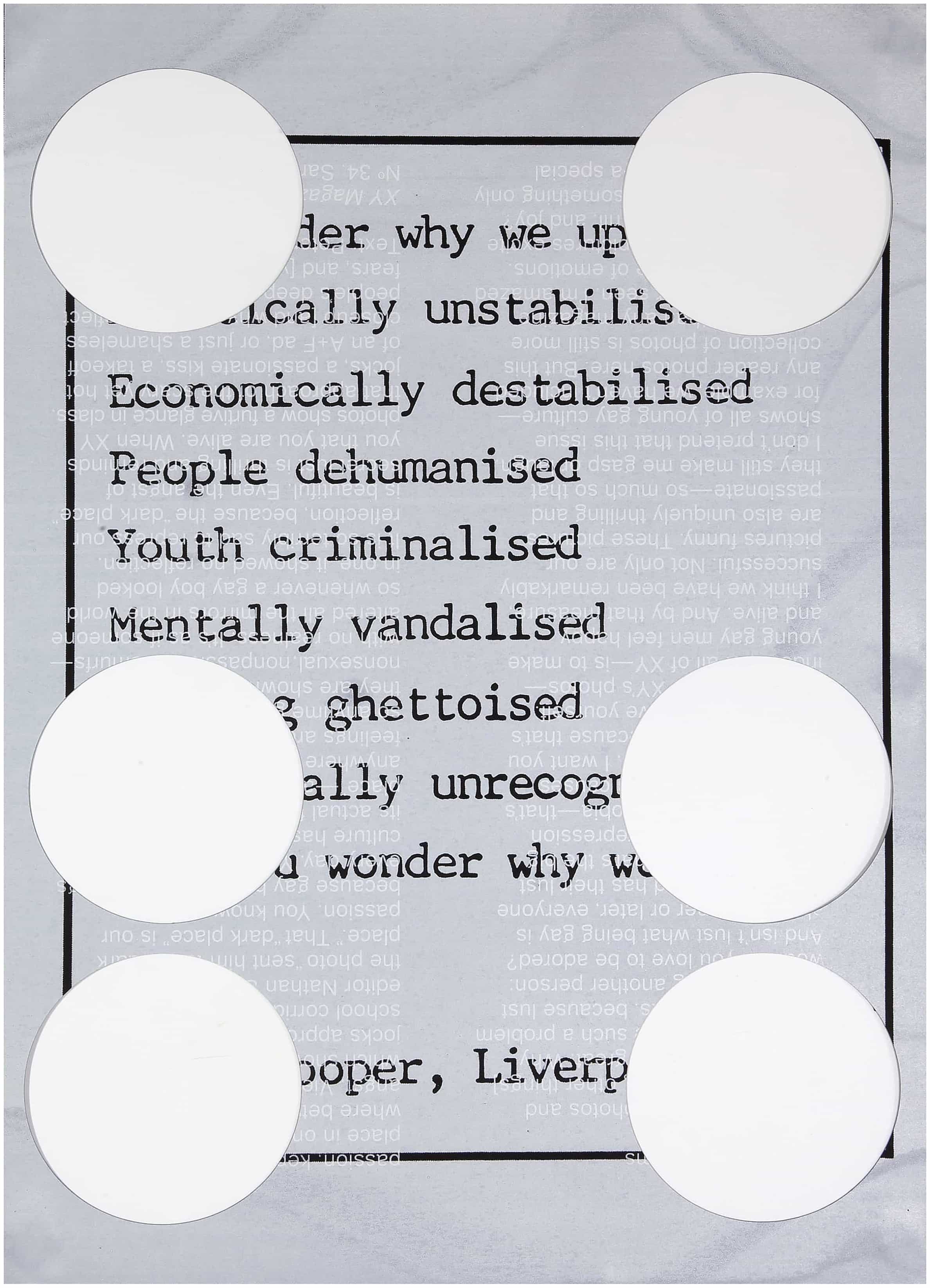 Test prints that were generated during the printing process of A GESTURAL HISTORY OF THE YOUNG WORKER (2019), an installation by Werker, are invalidated by punch holes. While the original documents lose their didactic function, other forms of value appear in the abstracted and commodified artwork.